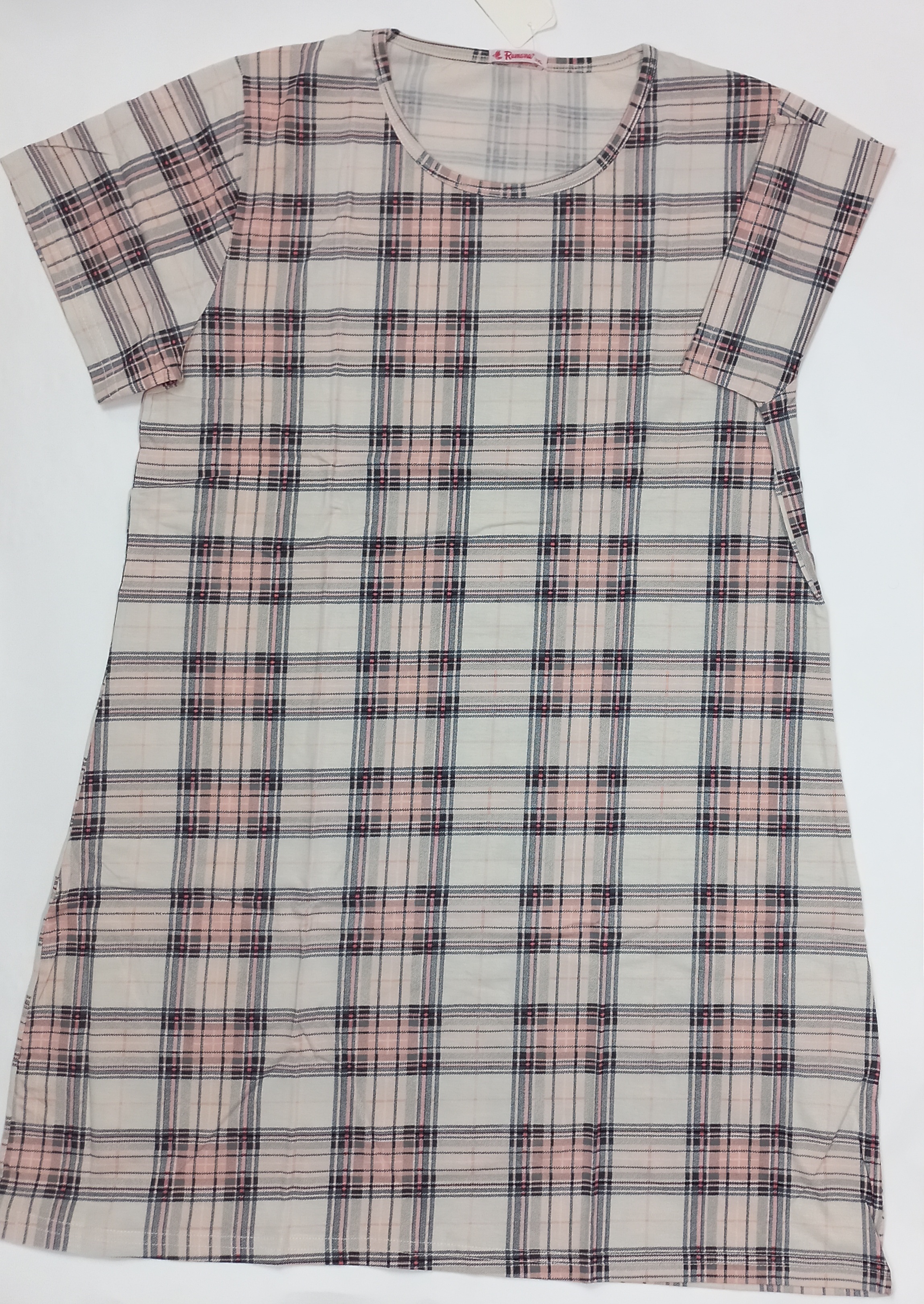 سارافون آستین دار زنانه پنبه ای چهارخونه گلبهی