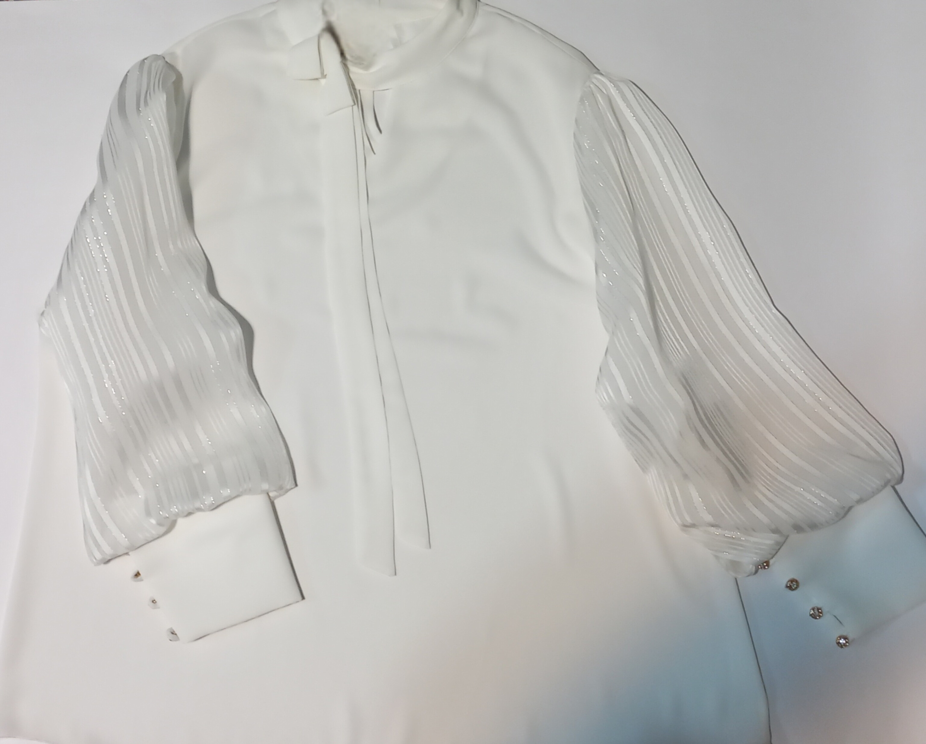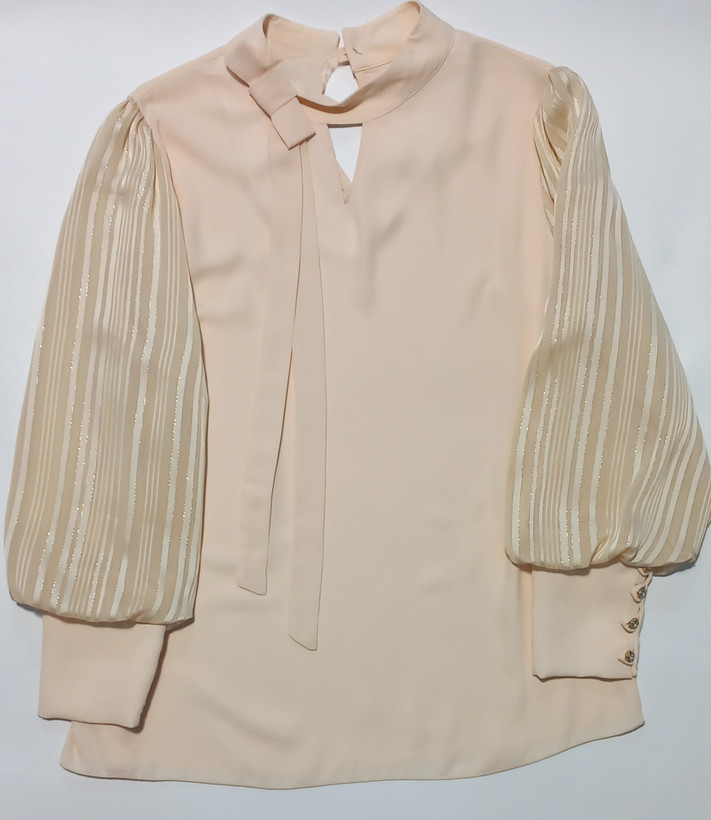 این لباس بسیار زیبا دارای چهار دکمه سر آستین،از پشت توسط یک دکمه بسته میشود،پاپیون بسیار شکیل در سمت راست یقه و برش vدر یقه بسیار تمیز و خوش دوخت