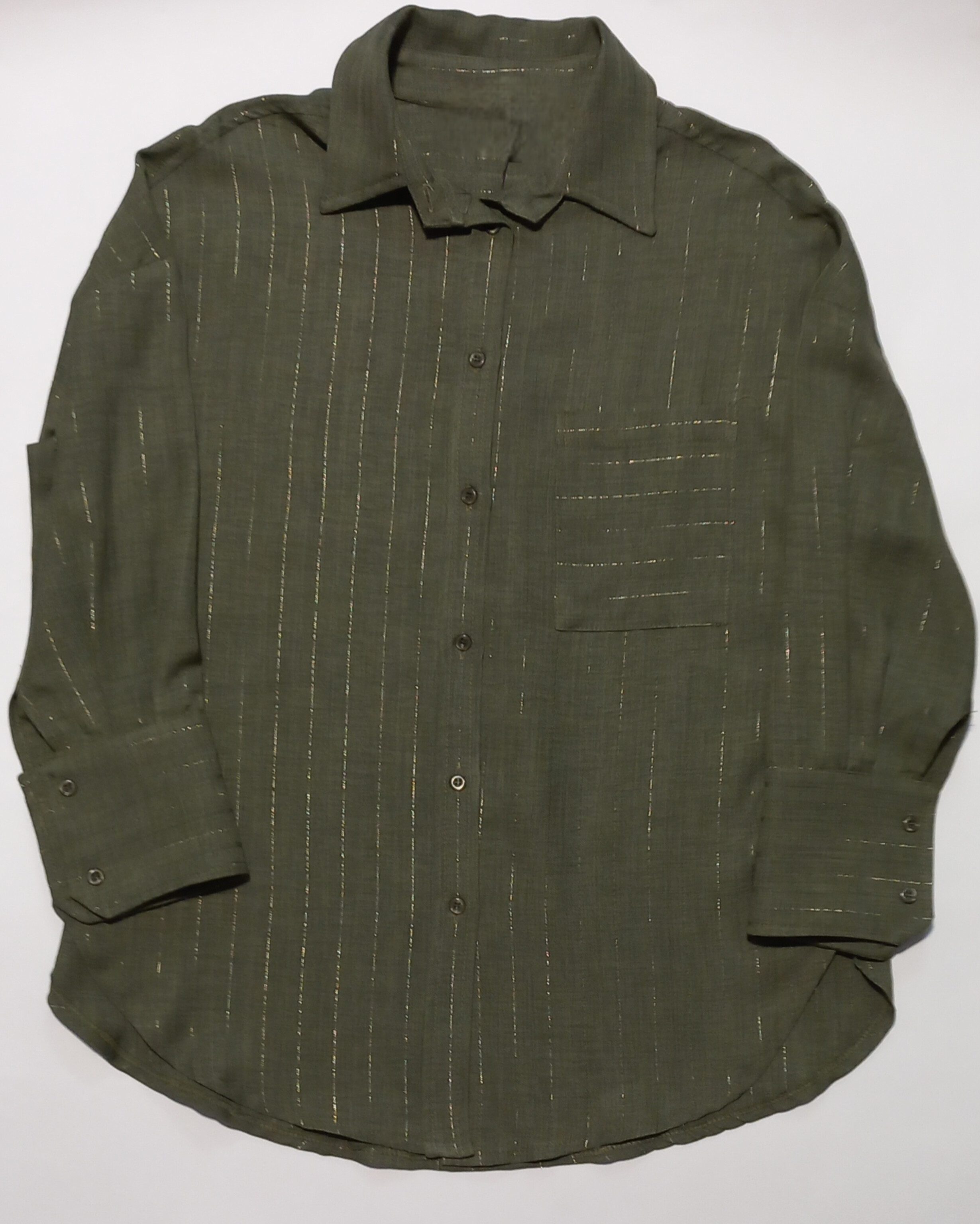 دستهبندی: لباس مجلسیبرچسبها : لباس گرمبلوز زنانهبلوزبلوز مجلسیجنس: نخی اتوبانی زری دارقد: ۷۲قد آستین: ۴۲دور مچ: ۲۰دور سینه : ۵۴جیب : یک عدددور باسن : ۶۱نحوه بسته شدن : شش دکمهجزئیات : دور مچ دو دکمه داردقد پاکت مچ : ۱۱نمایش بیشتر