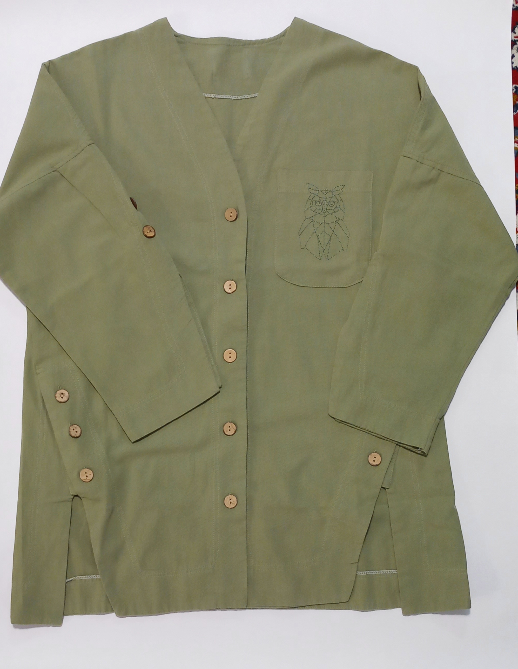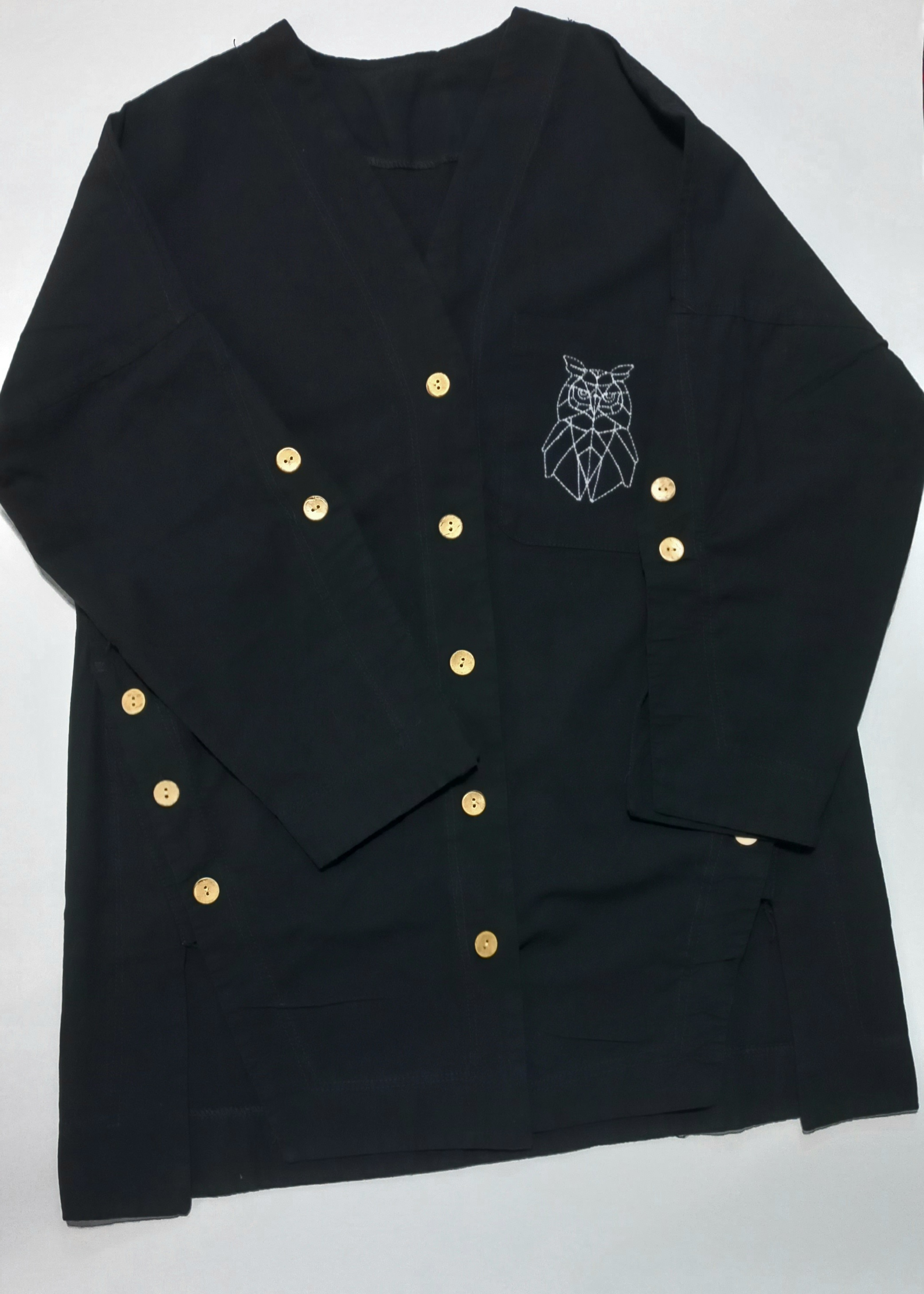 دستهبندی: تونیک زنانهبرچسبها : تونیک زنانهمانتو زنانهتونیک مجلسیمانتو مجلسیقد: ۷۷قد آستین: ۴۶دور سینه: ۵۰جیب: یک عدددور بازو : ۴۰سایز : فری سایزنحوه بسته شدن : پنج دکمهجزئیات : طرح جغد گلدوزی شده روی جیب،دو طرف پایین و جلو برش و سه دکمه،سر آستین تا۱۸سانت باز و دو دکمهنمایش بیشتر