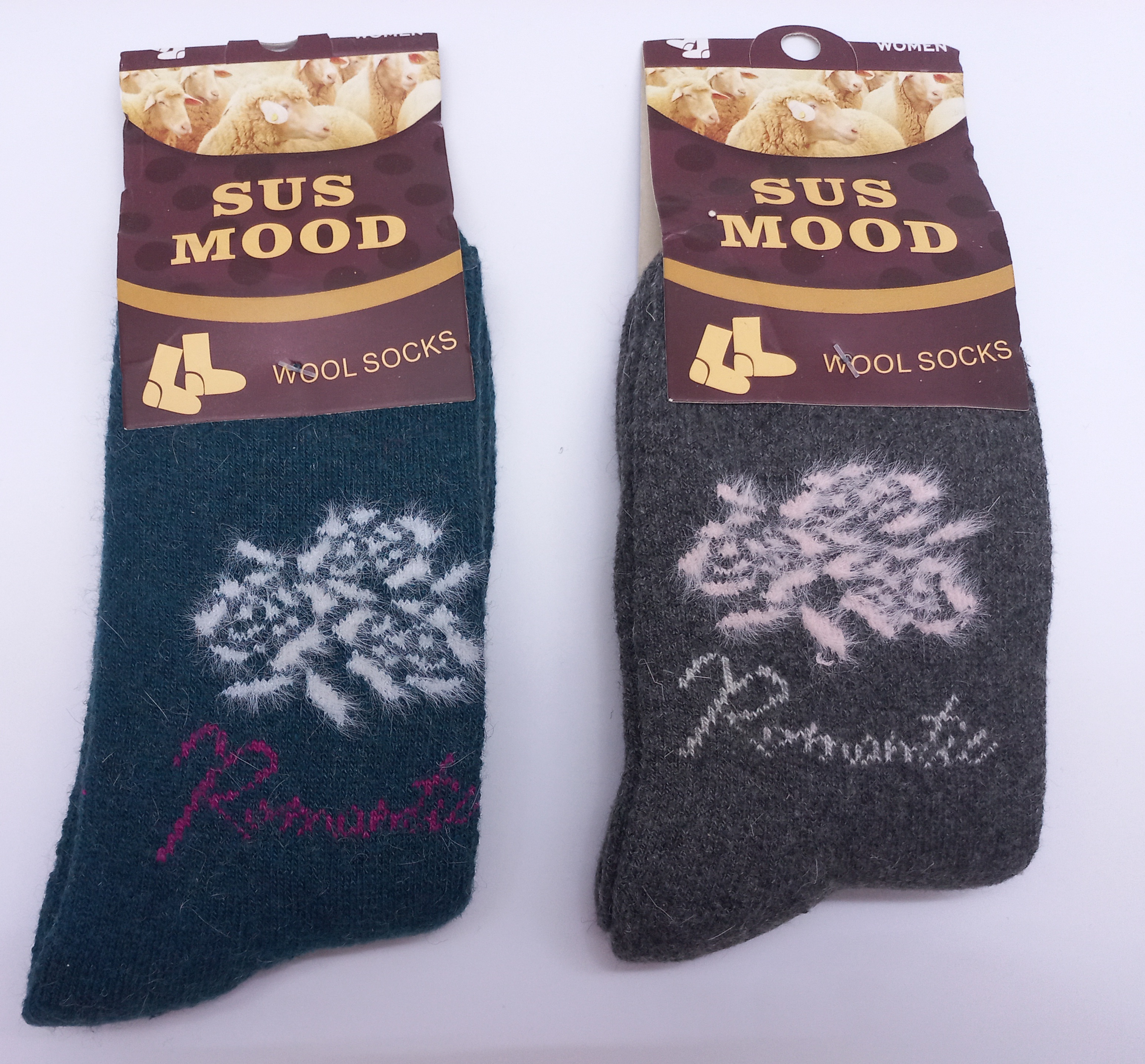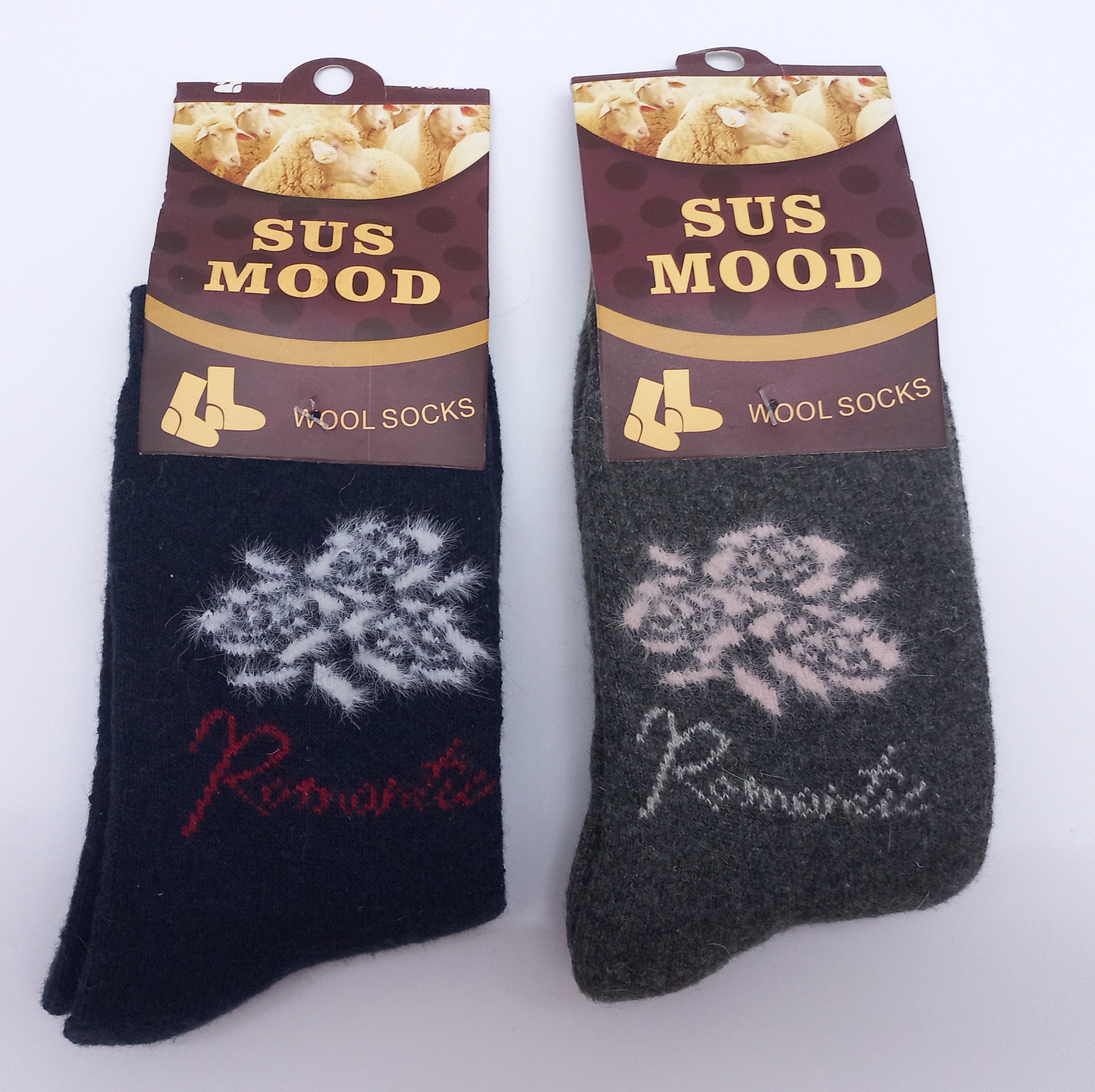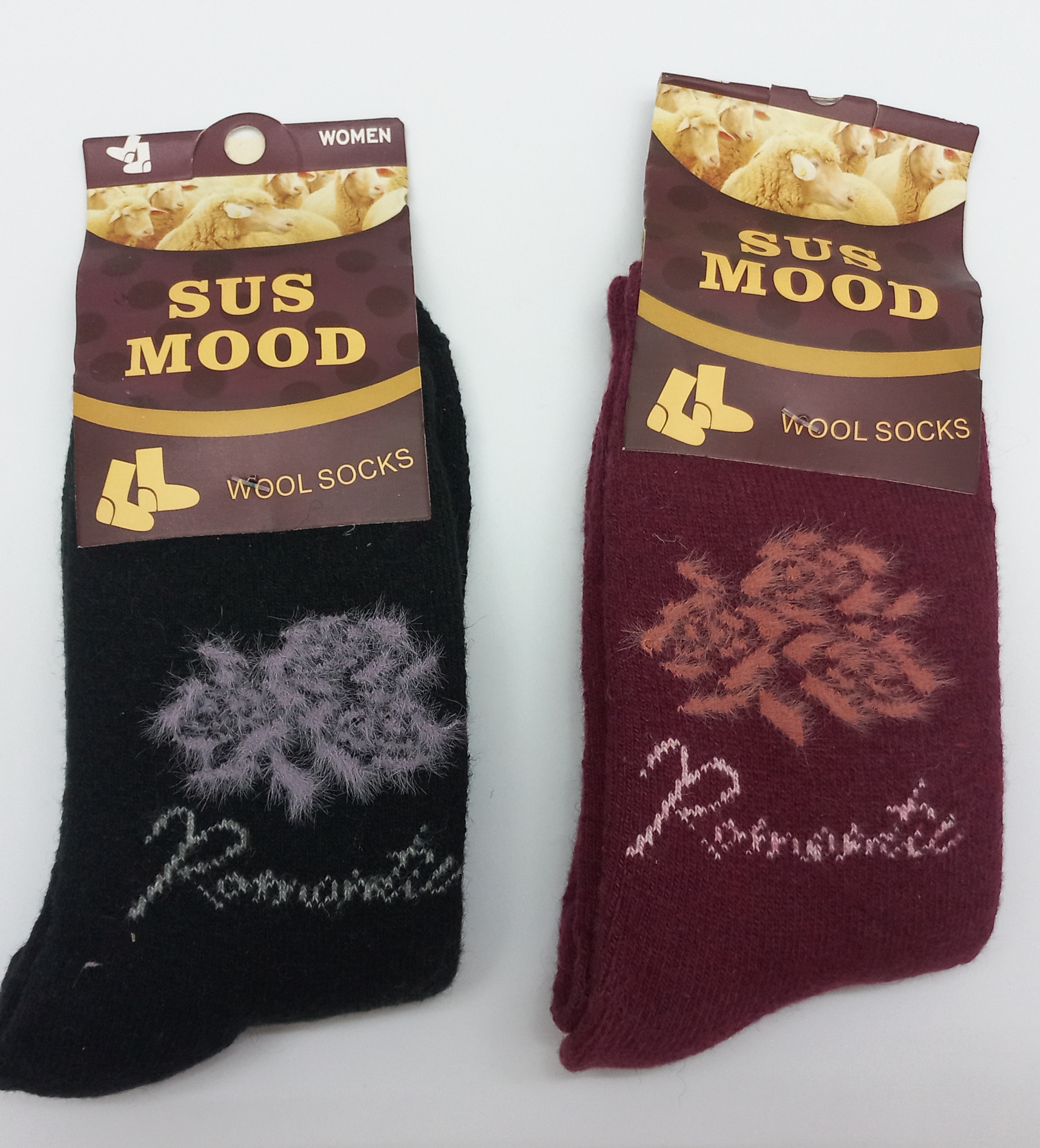 جوراب زنانه پشمی گرم طرح سه گل پک دو عددی